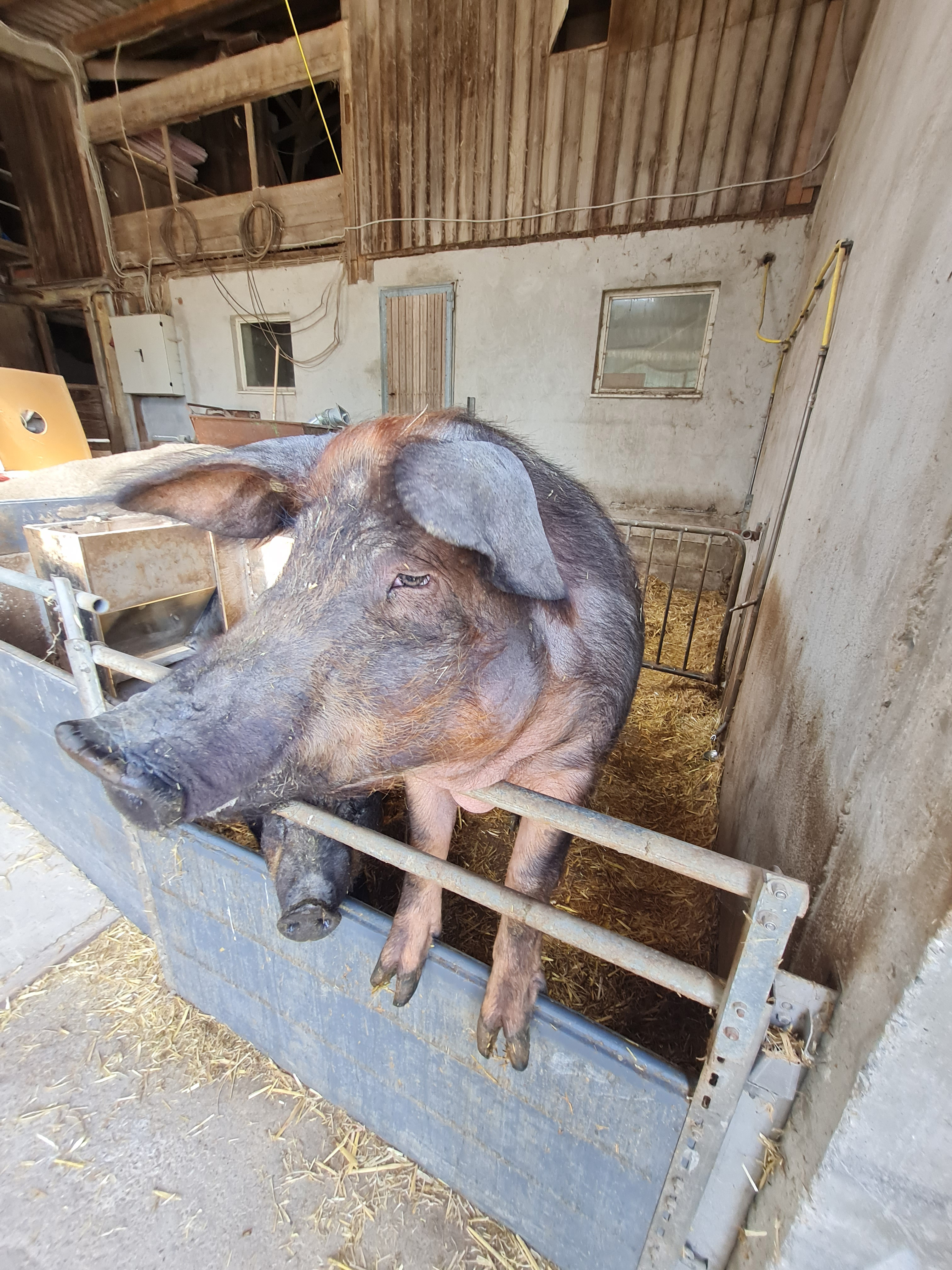 Auf dem Hof leben Stroh- und Ibérico-Schweine, die in großzügigen, hellen Ställen mit viel Stroh und Auslauf gehalten werden. Dieses natürliche Umfeld sorgt für gesunde Tiere und eine besonders hohe Fleischqualität – Schweinefleisch und Wurstwaren mit Charakter und Herkunft.